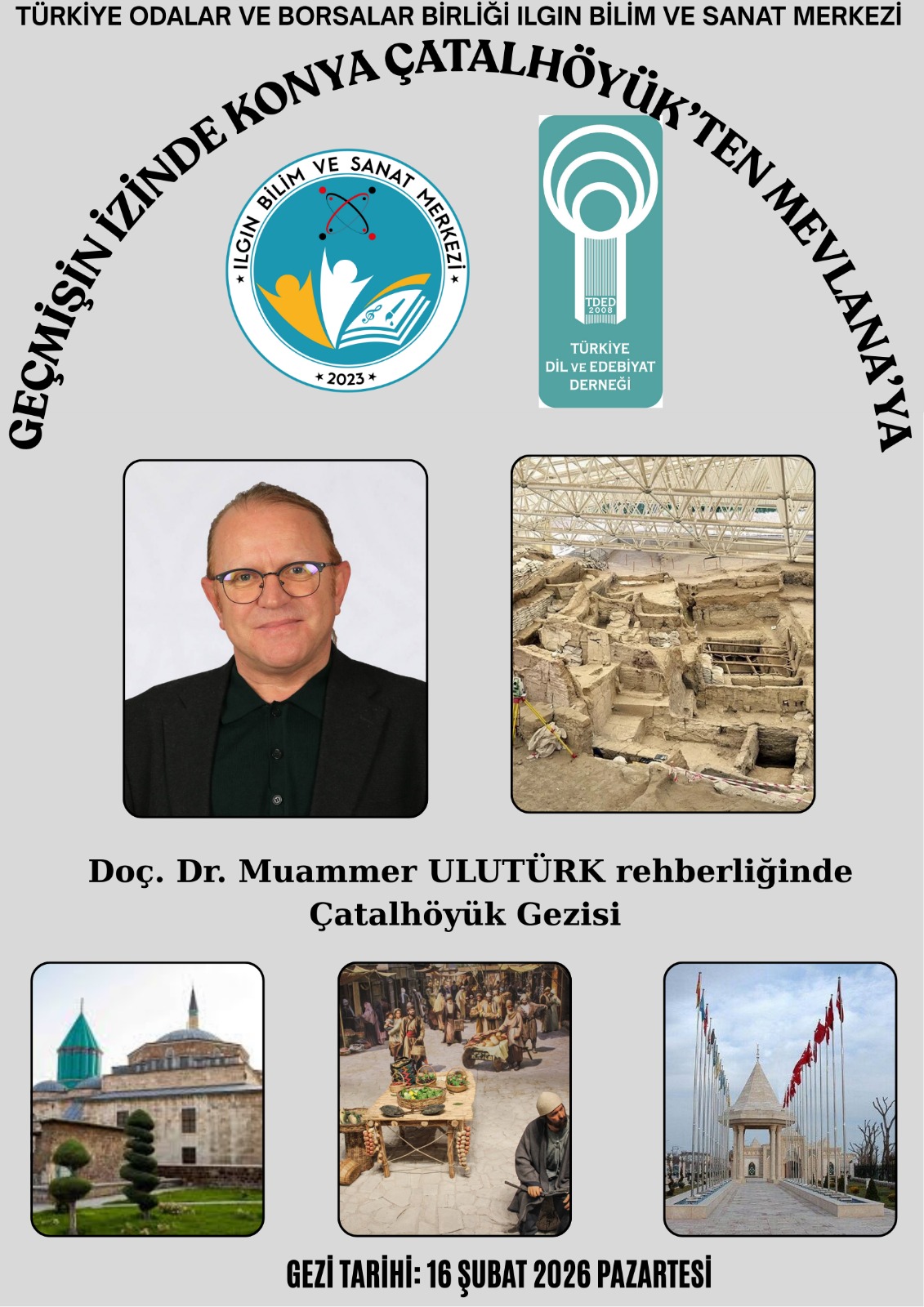 Konya şubesi olarak Konya Ilgın Türkiye Odalar ve Borsalar Birliği Bilim ve Sanat Merkeziyle tarihe yolculuk yaptık. Çatalhöyük antik kentinde yapılan programa şube başkanımız Muammer Ulutürk rehberlik etti.